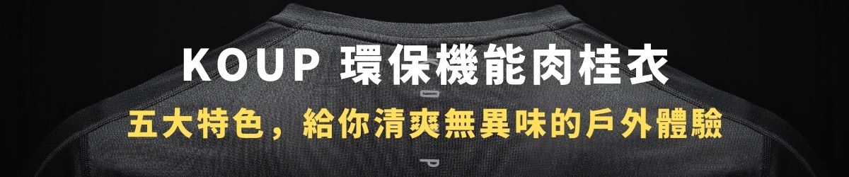 KOUP 環保機能肉桂衣,便是利用專利技術,將肉桂萃取物,加進可循環再利用的寶特瓶紗,並透過特殊織造技術,製成一件抗菌、吸濕排汗、透氣涼感的機能衣!
